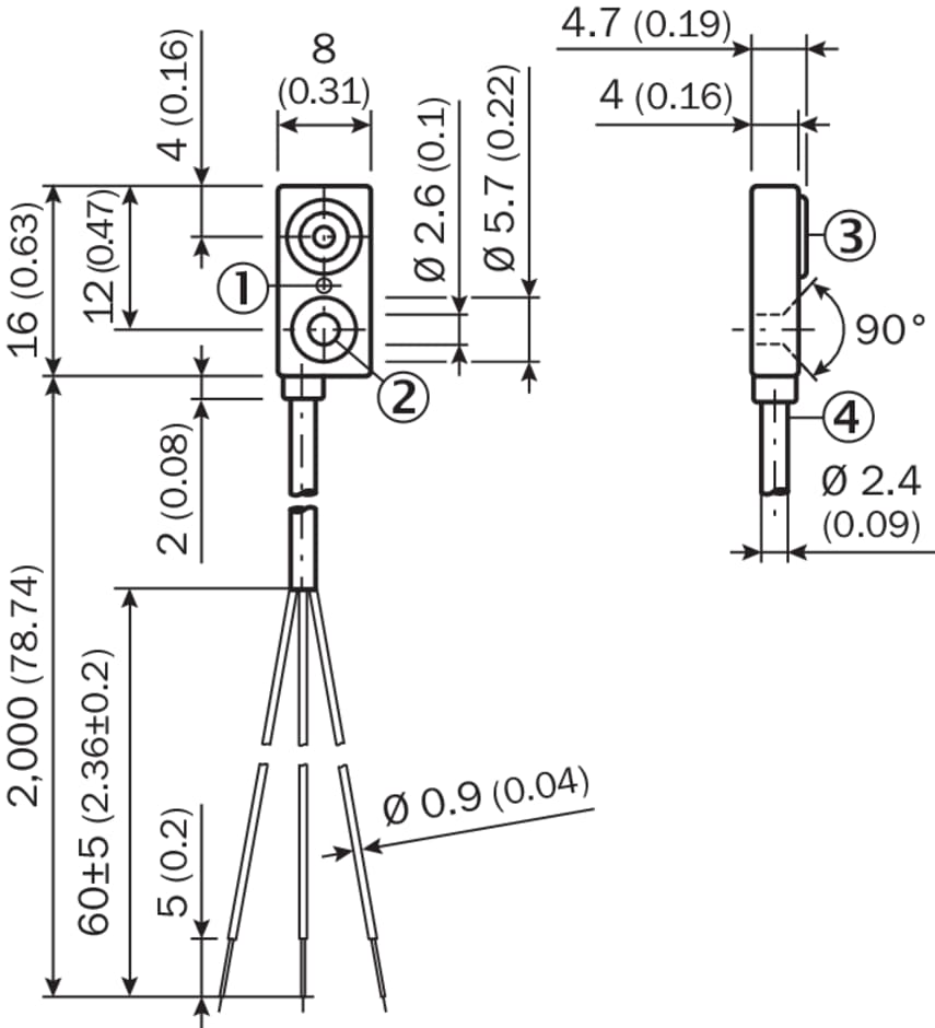 détecteurs de proximité inductifs, IQM, IQ04-1B5NOKW2S, Distance de commutation Sn: 1,5 mm, Montage dans métal: Noyable, Forme rectangulaire (l x H x P): 8 mm x 16 mm x 4 mm, Version électrique: CC 3 fils, Sortie de commutation: NPN, Fonction de commutation: Contact NF, Mode de raccordement: Câble, 3 fils, 2 m