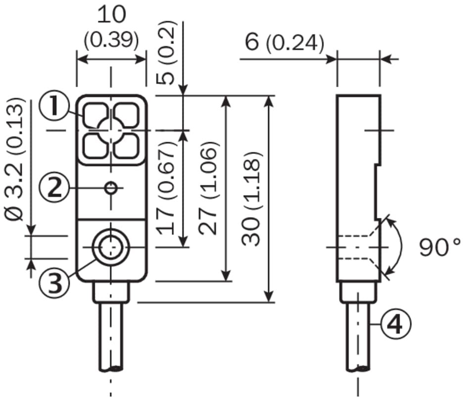 détecteurs de proximité inductifs, IQM, IQ06-03BPSKU2S, Distance de commutation Sn: 3 mm, Montage dans métal: Noyable, Forme rectangulaire (l x H x P): 10 mm x 30 mm x 6 mm, Version électrique: CC 3 fils, Sortie de commutation: PNP, Fonction de commutation: Contact NO, Mode de raccordement: Câble, 3 fils, 2 m