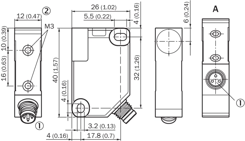 détecteurs de proximité inductifs, IQB, IQ12-04BNOKT0S, Distance de commutation Sn: 4 mm, Montage dans métal: Noyable, Forme rectangulaire (l x H x P): 12 mm x 40 mm x 26 mm, Version électrique: CC 3 fils, Sortie de commutation: NPN, Fonction de commutation: Contact NF, Mode de raccordement: Connecteur mâle M8, 3 pôles