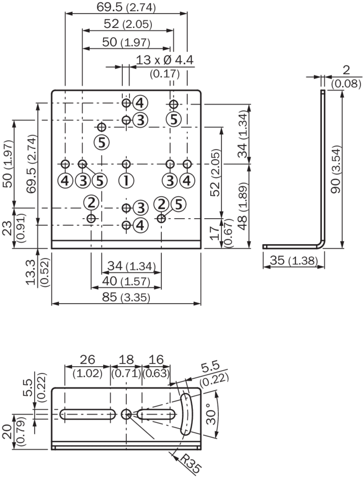 Équerres et plaques de fixation, équerre de fixation, BEF-WN-REFX, Description: Equerre de fixation universelle pour réflecteurs, Dimensions (l x H x L): 85 mm x 90 mm x 35 mm, Matériau: Acier, Détails: Acier galvanisé, Convient pour: C110A