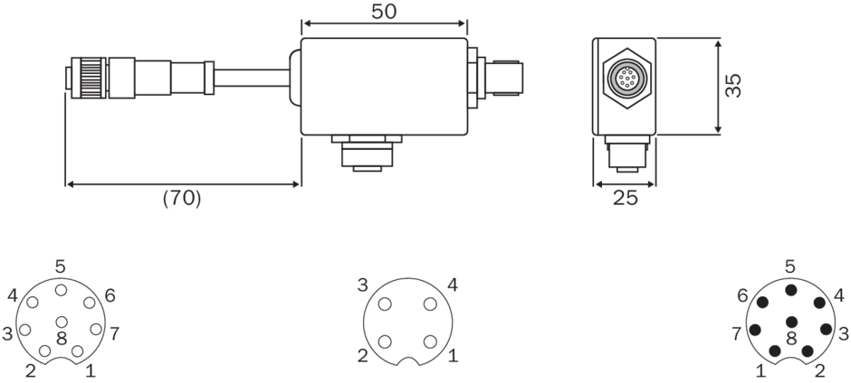 éclairages, LED, Trigger VLR, Description: Unité de déclenchement pour le raccordement et l'activation des éclairages VLR par la caméra, Raccordements: Connecteur femelle M12, 4 pôles, connecteur femelle M12, 8 pôles, connecteur mâle M12, 8 pôles, Tempéra
