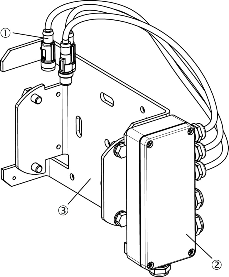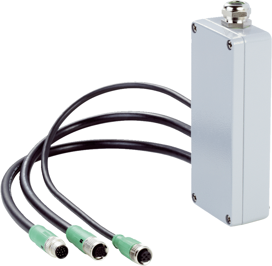 modules de raccordement, Unité de raccordement, Famille d'accessoires: Modules de raccordement, Description: Boîtier de raccordement pour l?alimentation, les I/O et les données RS-232/-422 (pas Ethernet), avec trois câbles M12 préconfection