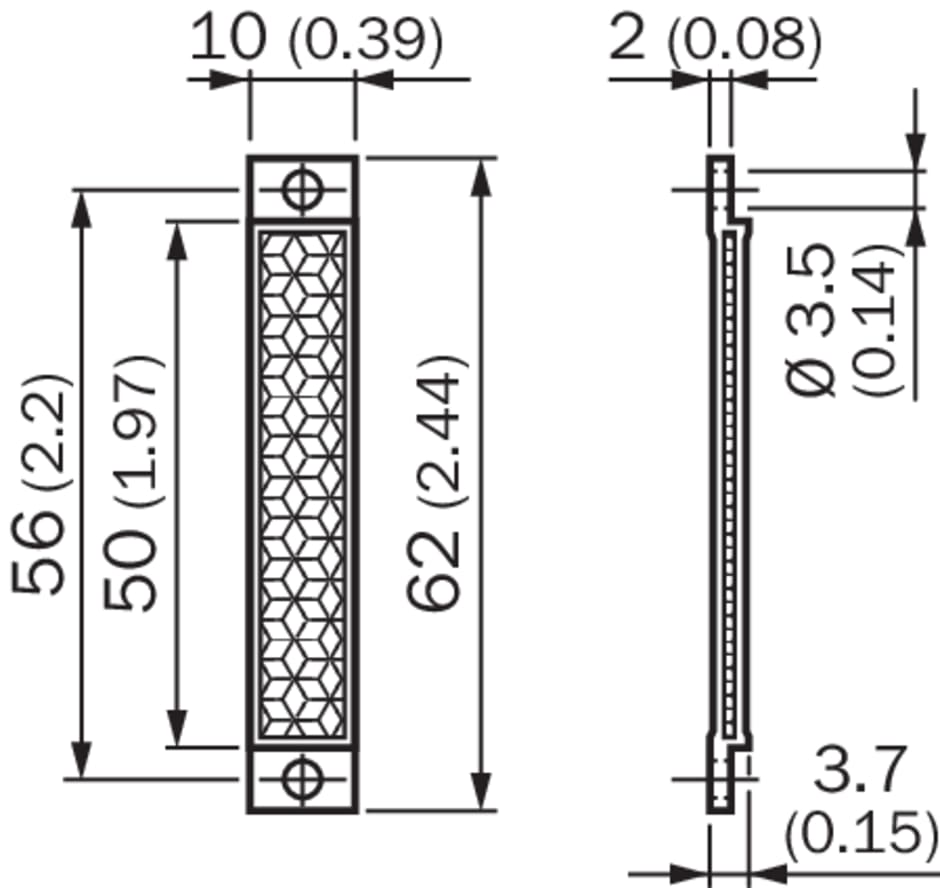 réflecteurs et optique, réflecteurs, PL16F, Description: Réflecteur, rectangulaire, plat, alésage de fixation Ø 3,5, IP 67, surface réfléchissante 8 x 48 mm, idéal en association avec des capteurs destinés à la détection d’objets transparents, Dimensions: 8 mm 48 mm, Température de fonctionnement: –30 °C ... +50 °C