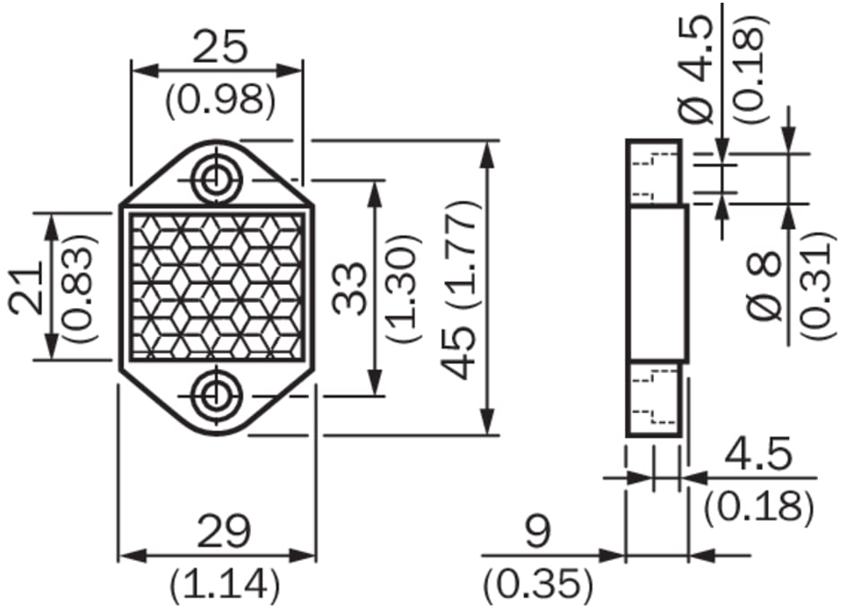 réflecteurs et optique, réflecteurs, P40, Description: Rectangulaire, à visser, Dimensions: 29 mm 45 mm, Température de fonctionnement: –20 °C ... +65 °C