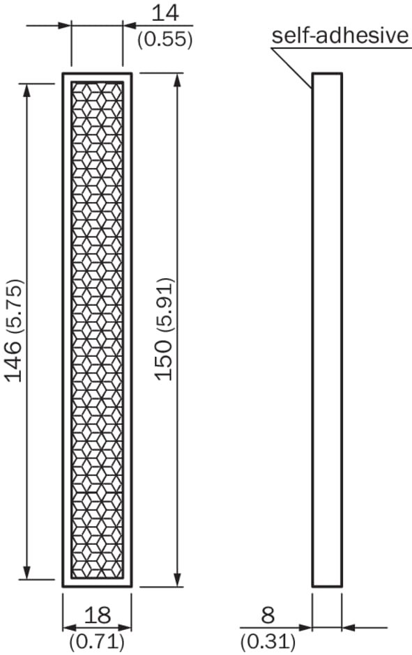 réflecteurs et optique, réflecteurs, PL150, Description: Rectangulaire, autocollant, Dimensions: 18 mm 150 mm, Température de fonctionnement: –20 °C ... +65 °C