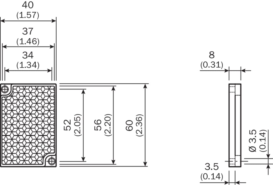 réflecteurs et optique, réflecteurs, PL40B-CHEM, Description: Rectangulaire, à visser M3, tête enfoncée, résistant aux produits chimiques, Dimensions: 40 mm 60 mm, Température de fonctionnement: –20 °C ... +140 °C