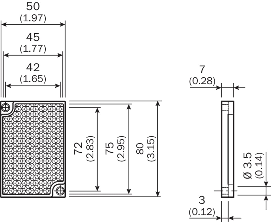 réflecteurs et optique, réflecteurs, PL81-1F, Description: Dispositif rétroréfléchissant petit format, à visser, adapté aux capteurs laser, Dimensions: 50 mm 80 mm, Température de fonctionnement: –30 °C ... +65 °C