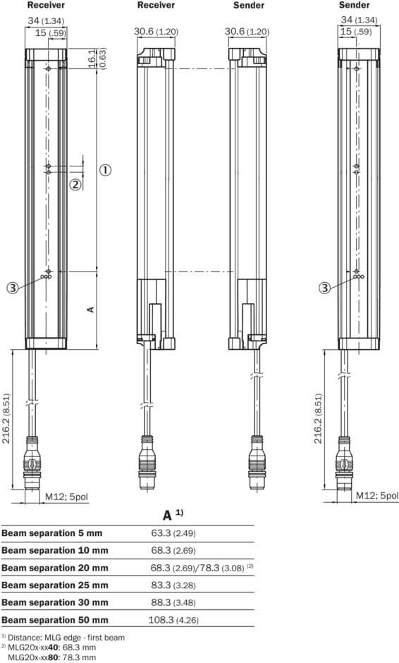 rideaux d'automatisme, MLG-2, MLG05S-0445D10501, Version d’appareil: Prime - Standard functionality, Entrées/sorties: 3 x Q (IO-Link), Option: Aucune, Entraxe des faisceaux: 5 mm, Portée de travail: 5 m, Hauteur de détection: 445 mm, Longueur du câble: 0,22 m, 0,22 m, Temps de réponse: 11,2 ms, Caractéristique logicielle (réglage par défaut - voir données/caractéristiques techniques): 01