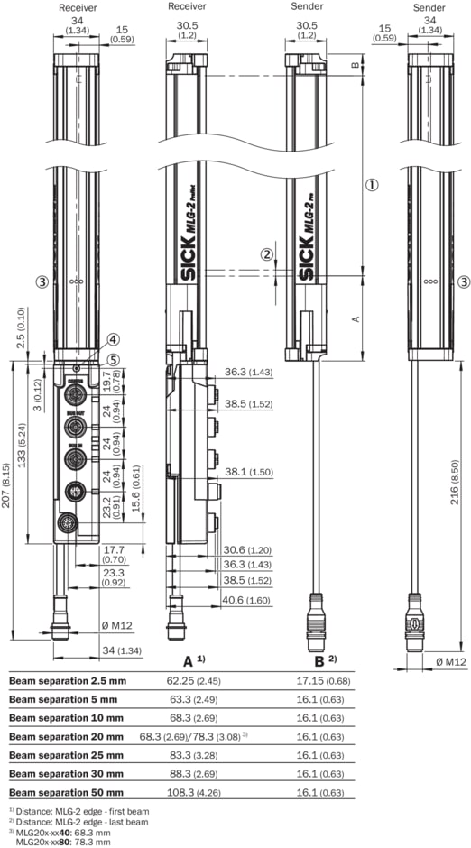rideaux d'automatisme, MLG-2, MLG50N-1450N10501, Version d’appareil: ProNet - Fonctionnalité étendue, y compris le bus de terrain, Option: Aucune, Entraxe des faisceaux: 50 mm, Portée de travail: 5 m, Hauteur de détection: 1.450 mm, Longueur du câble: 0,22 m, 0,21 m, Temps de réponse: 3,6 ms, Caractéristique logicielle (réglage par défaut - voir données/caractéristiques techniques): 01