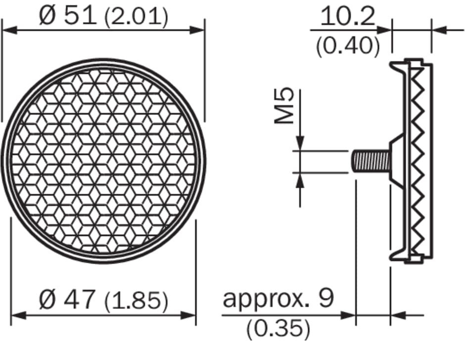 réflecteurs et optique, réflecteurs, P50-1, Description: Rond, boulon de fixation M5x9 mm, Température de fonctionnement: –20 °C ... +65 °C