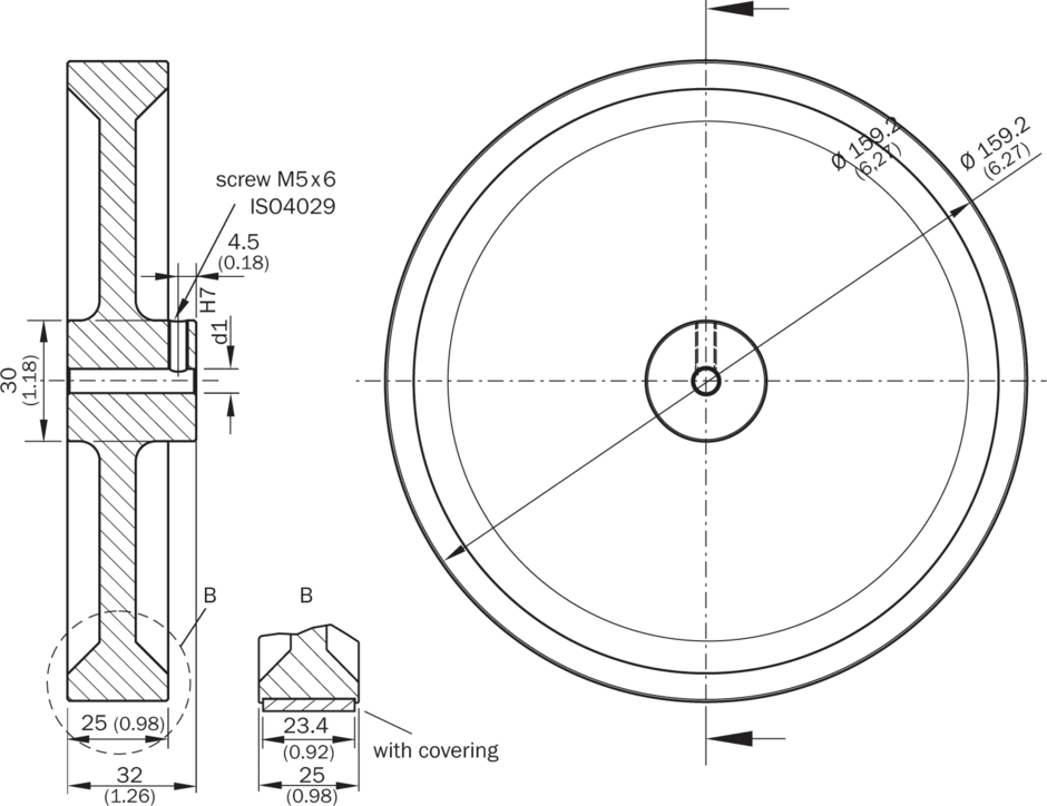 autres accessoires de montage, Roues de mesure et systèmes de roue de mesure, BEF-MR10500APN, Description: Roue de mesure en aluminium avec surface en polyuréthane à aspérités pour axe saillant 10 mm, circonférence 500 mm