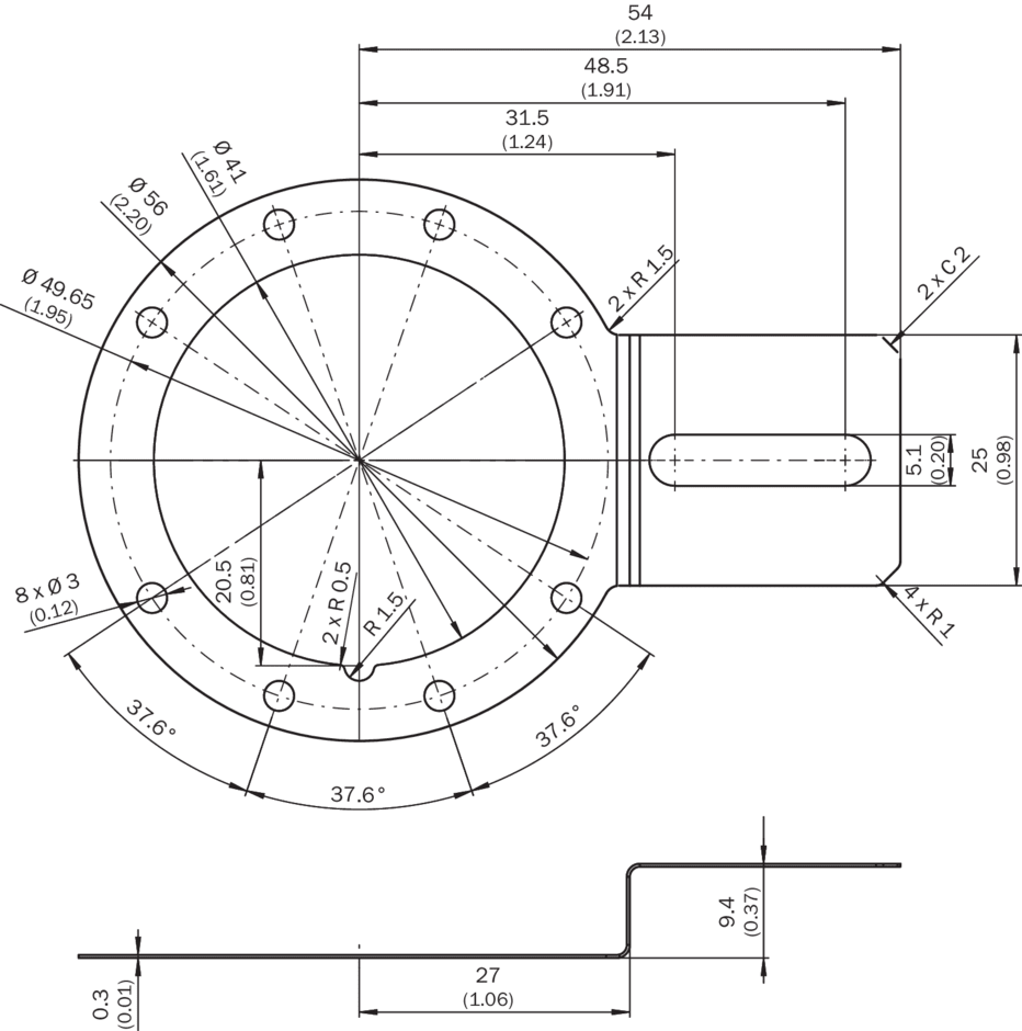 technique de fixation, Brides stratoriques, BEF-DS-12, Famille de produits: Brides stratoriques, Description: Support de couple 1 côté, trou oblong, rayon du cercle de trous 31,5 mm-48,5 mm, largeur de trou 5,1 mm