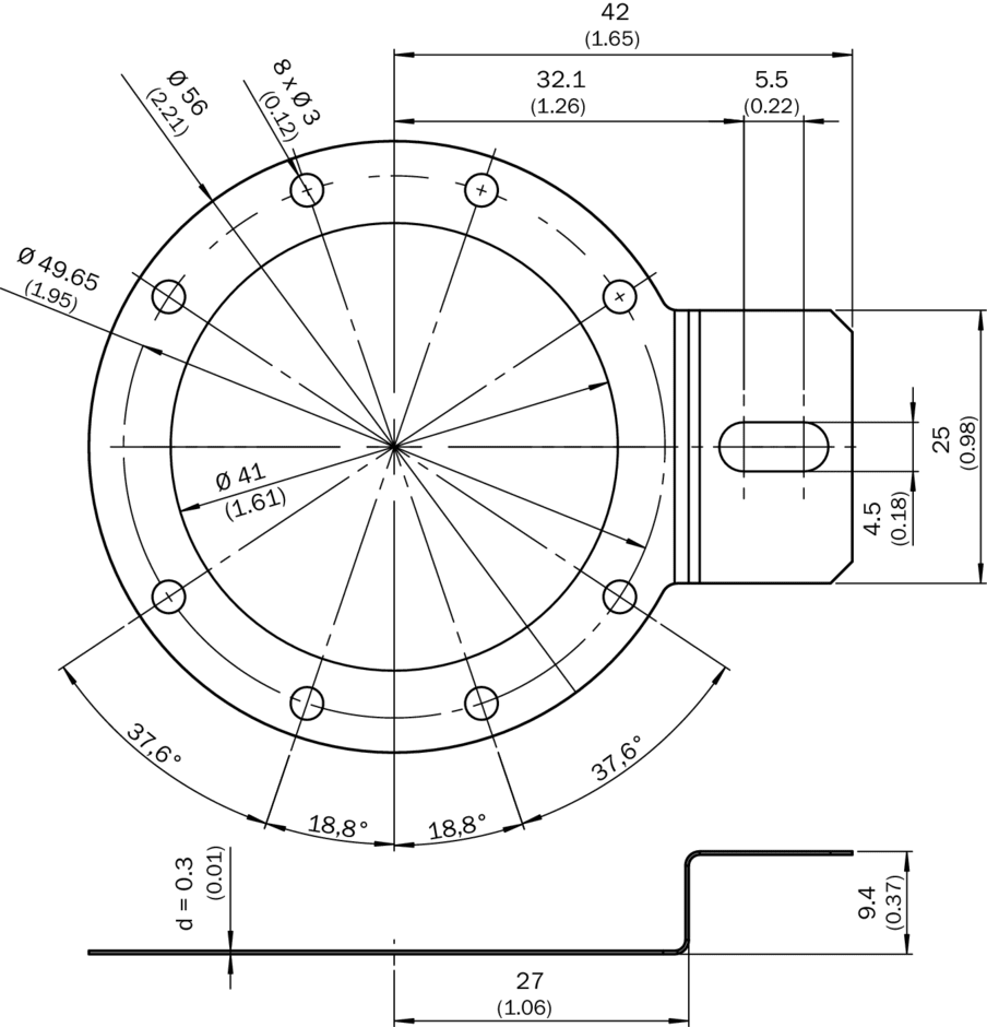 technique de fixation, Brides stratoriques, BEF-DS-14, Famille de produits: Brides stratoriques, Description: Bras de couple unilatéral, trou oblong, rayon du cercle de trous 32,1 mm à 37,6 mm, largeur de trou 4,5 mm