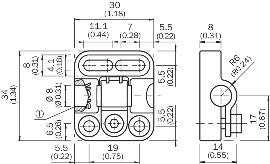 technique de fixation, Supports, BEF-KHF-M08, Description: Bloc de serrage pour capteurs cylindriques M18 avec butée fixe, Matériau: Plastique, Détails: Plastique (PA12) renforcé de fibres de verre, Contenu de la livraison: Avec matériel de