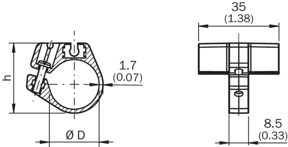 technique de fixation, Supports, BEF-KHZ-RT-50, Description: Support de fixation sur vérin cylindrique avec diamètre de piston de 50 mm, température ambiante de 0 °C à 50 °C, Dimensions (l x H x L): 61,8 m, Matériau: Plastique, aluminium, Détails: Plastique, aluminium, Unité d'emballage: 1 pièce, Convient pour: Rainure en T