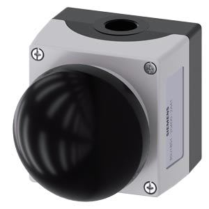 Boîtier pour Appareils de commande 22 mm, rond, Matériau du boîtier : métal, partie supérieure du boîtier : gris, 1 emplacement en métal Point de commande au centre, A = coup-de-poing géant, noir, sans maintien, 1S, borne à vis, Fixation au