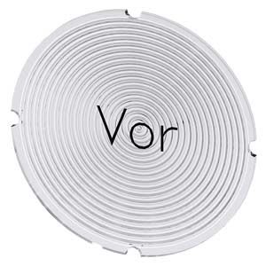 Étiquette intérieure pour bouton-poussoir lumineux, rond, laiteux avec police noire, avec inscription: Vor