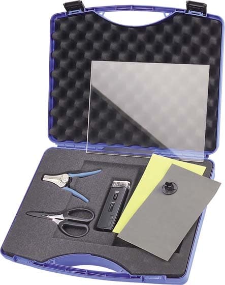 kit de terminaison SC RJ PCF Plug, coffret de connectorisation pour le montage sur site de connecteurs SC RJ PCF SC RJ- comprenant outil de dégainage, ciseaux à kevlar, cliveuse