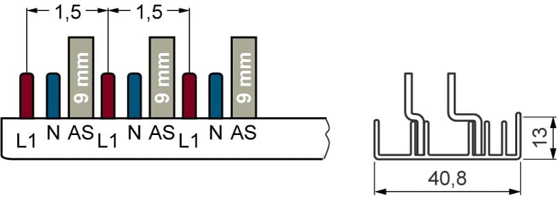 Siemens Industry - Pin Busbar 10mm2, 1p/N Comp+AS 1000mm - 5ST37780
