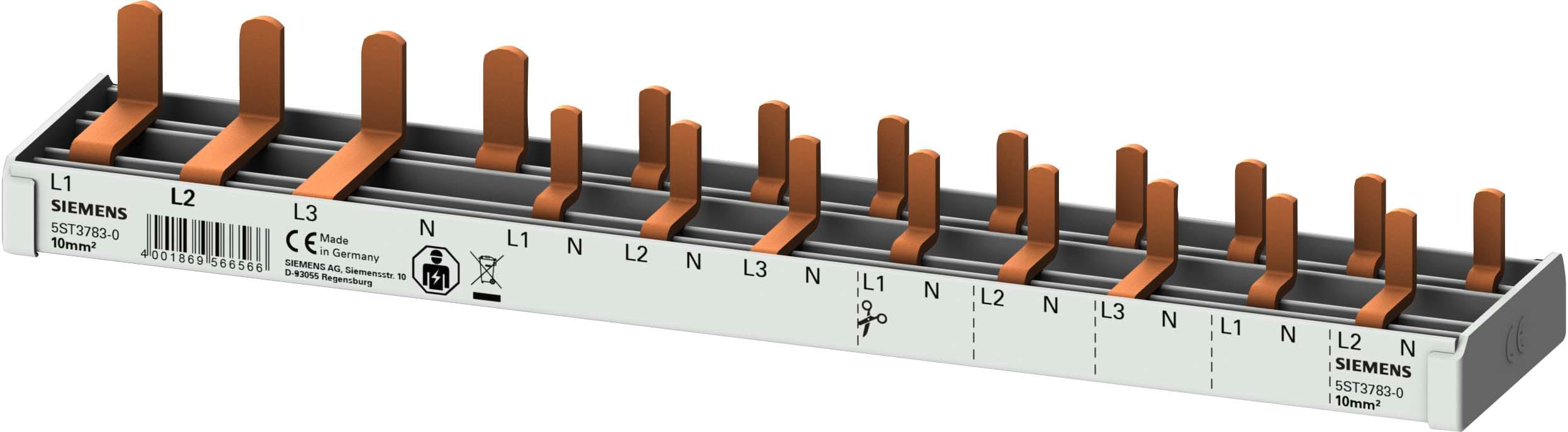 Siemens Industry - Pin Busbar 10mm2,1xRCCB 3p/N+8xComp 12MW - 5ST37830