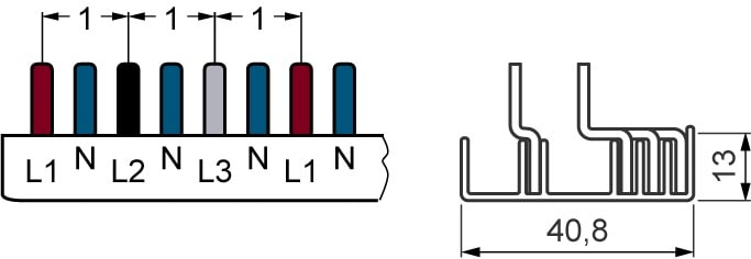 barre d'alimentation pour broches compacte, 10mm2 raccordement 3p/N appareil compact 1 TE protégé contre les contacts directs découpable en pièce d'1 m