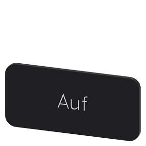 Plaquette de repérage à encliqueter ou à coller sur porte-étiquette, Taille de plaquette 12,5 x 27 mm, Plaquette noire, Police blanche, avec inscription: Auf