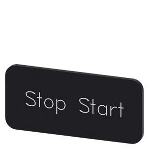 Plaquette de repérage à encliqueter ou à coller sur porte-étiquette, Taille de plaquette 12,5 x 27 mm, Plaquette noire, Police blanche, avec inscription: Stop Start