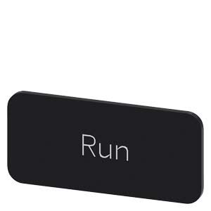 Plaquette de repérage à encliqueter ou à coller sur porte-étiquette, Taille de plaquette 12,5 x 27 mm, Plaquette noire, Police blanche, avec inscription: Run
