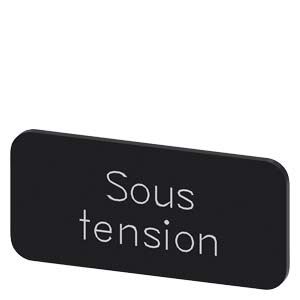 Plaquette de repérage à encliqueter ou à coller sur porte-étiquette, Taille de plaquette 12,5 x 27 mm, Plaquette noire, Police blanche, avec inscription: Sous tension