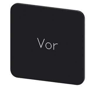 Plaquette de repérage à coller sur le boîtier, Taille de plaquette 22 x 22 mm, Plaquette noire, Police blanche, avec inscription: Vor