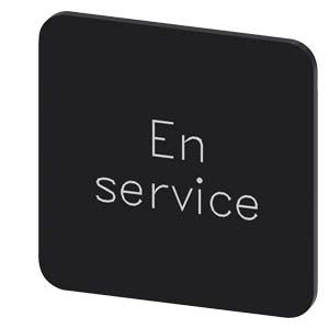 plaquette de repérage à coller sur le boîtier, taille de plaquette 22 x 22 mm, plaquette noire, police blanche, avec inscription : En service