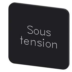 Étiquette de repérage à coller sur le boîtier, taille de plaquette 22 x 22 mm, plaquette noire, police blanche, avec inscription : sous tension