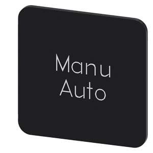 plaquette de repérage à coller sur le boîtier, taille d'étiquette 22x22 mm, étiquette noire, police blanche, avec inscription : Manu Auto