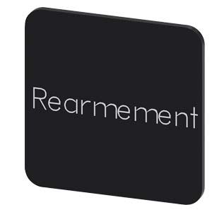 plaquette de repérage à coller sur le boîtier, taille de plaquette 22 x 22 mm, plaquette noire, police blanche, avec inscription°: Réarmement