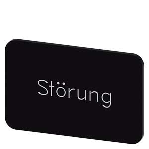 Plaquette de repérage à encliqueter ou à coller sur porte-étiquette, Taille de plaquette 17,5 x 27 mm, Plaquette noire, Police blanche, avec inscription: Störung