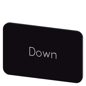 Plaquette de repérage à encliqueter ou à coller sur porte-étiquette, Taille de plaquette 17,5 x 27 mm, Plaquette noire, Police blanche, avec inscription: Down