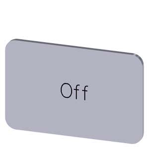 Plaquette de repérage à encliqueter ou à coller sur porte-étiquette, Taille de plaquette 17,5 x 27 mm, Étiquette argent, Police noire, avec inscription: Off