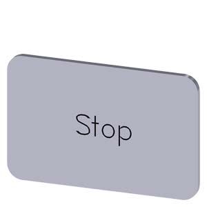Plaquette de repérage à encliqueter ou à coller sur porte-étiquette, Taille de plaquette 17,5 x 27 mm, Étiquette argent, Police noire, avec inscription: Stop