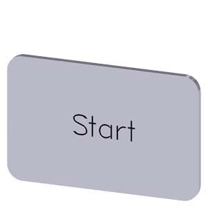 Plaquette de repérage à encliqueter ou à coller sur porte-étiquette, Taille de plaquette 17,5 x 27 mm, Étiquette argent, Police noire, avec inscription: Start