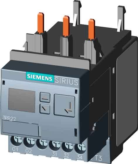 Relais de surveillance, pouvant être monté sur contacteur 3RT2, Taille S0 standard, à réglage numérique Surveillance de courant apparent/actif 4...40 A, 20...400 Hz, Triphasée Alimentation 24-240 V CA/CC 1 contact inverseur, 1 sortie à semi