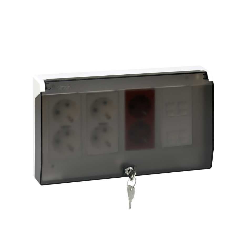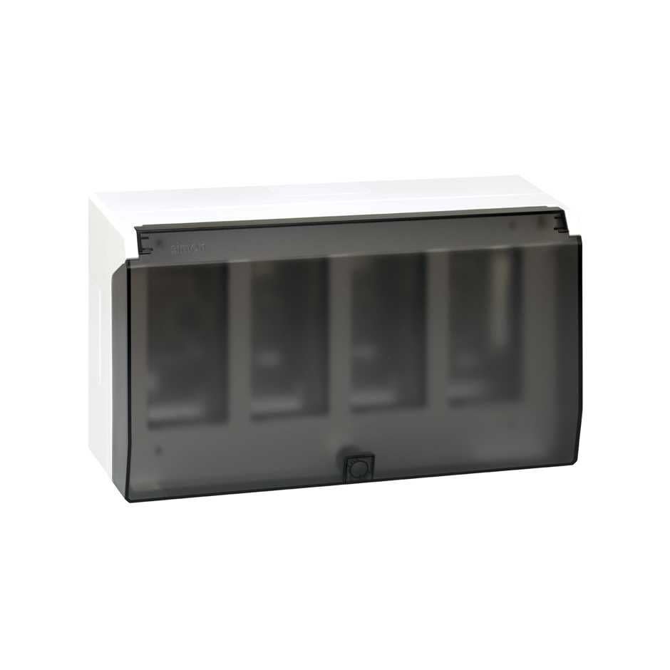 Simon - Boitier mural en saillie avec couvercle de protection - 4 modules - Blanc neige - 51040004-030