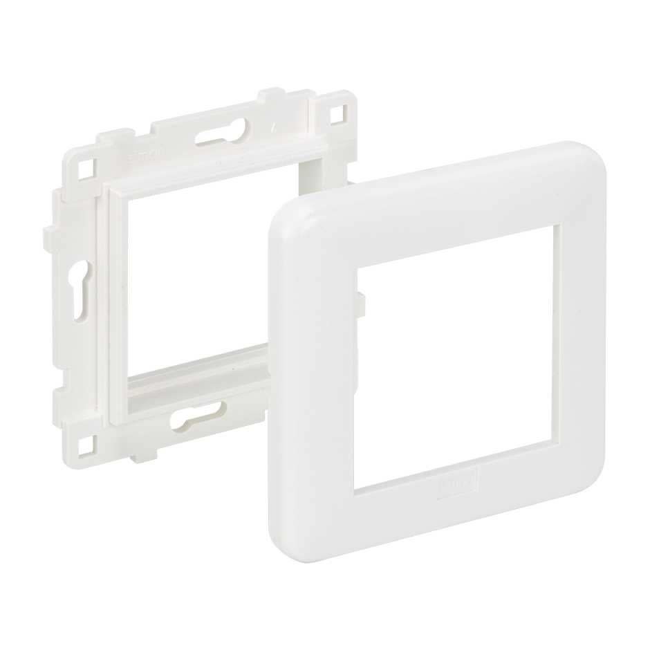 L'article comprend un support de cadre avec boîtier pour montage sur un boîtier universel à encastrer