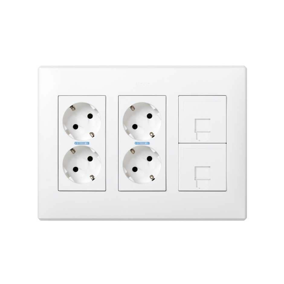 Simon - Double prise Schuko avec LED - à vis - Blanc neige - 50010472-030