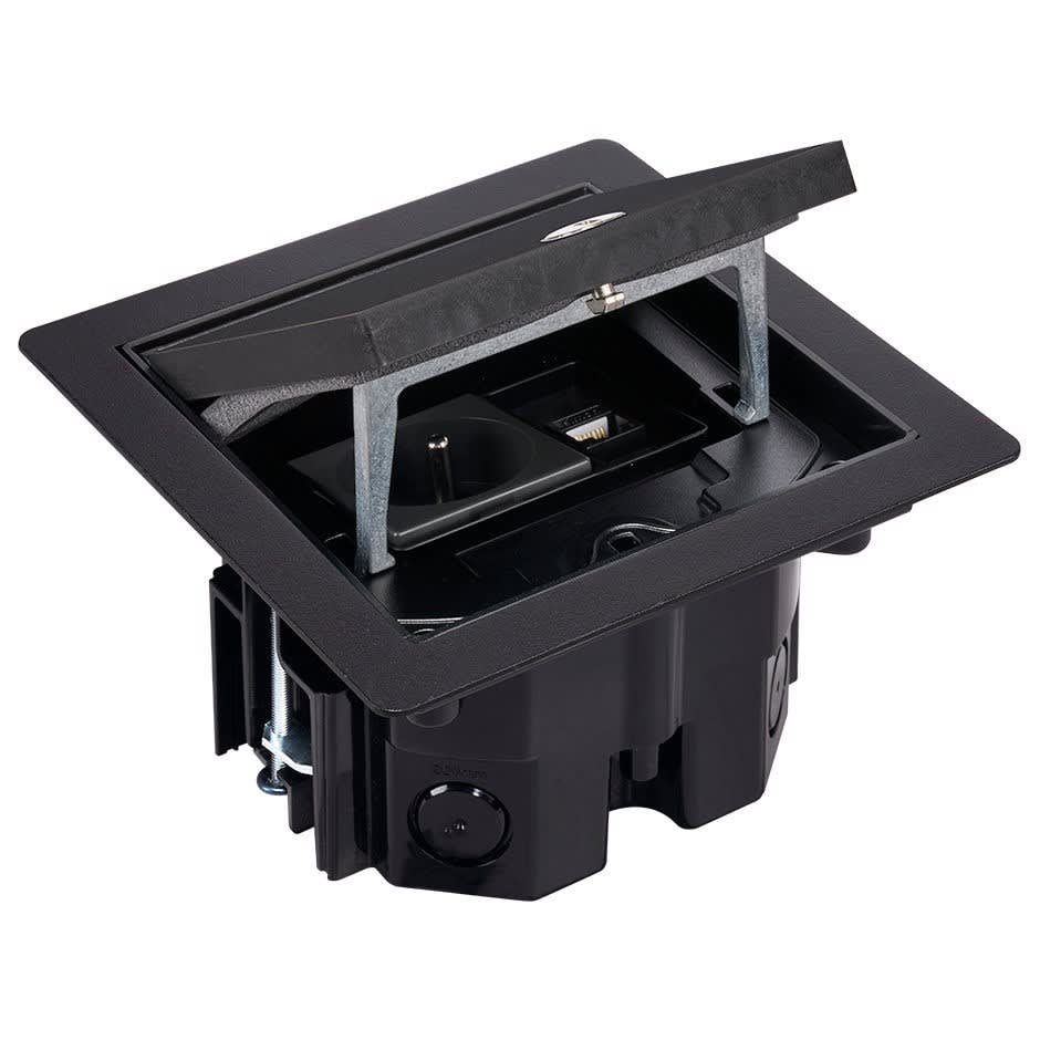 Kit boîtier de sol surélevé étanche IP66 avec 1 prise française + 1 connecteur RJ45 catégorie 6 UTP et gaine