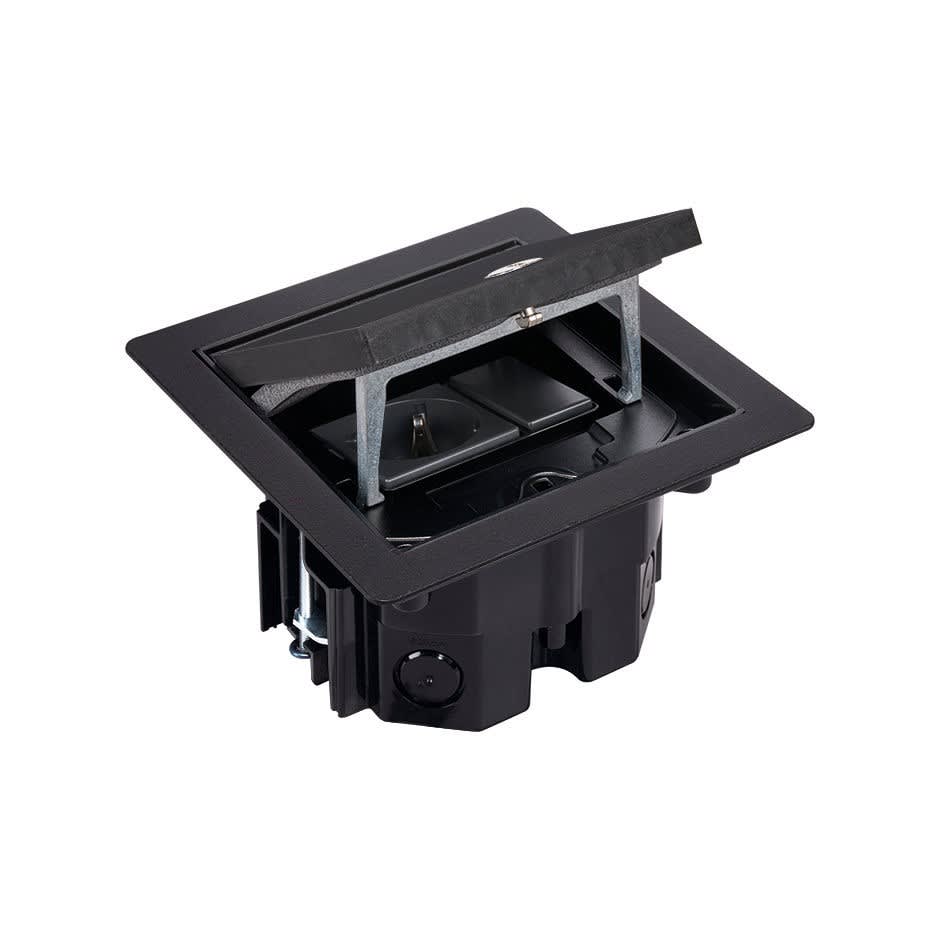 Kit de boîte de sol surélevé étanche IP66 avec 1 prise schuko + 1 couvercle étroit et gaine