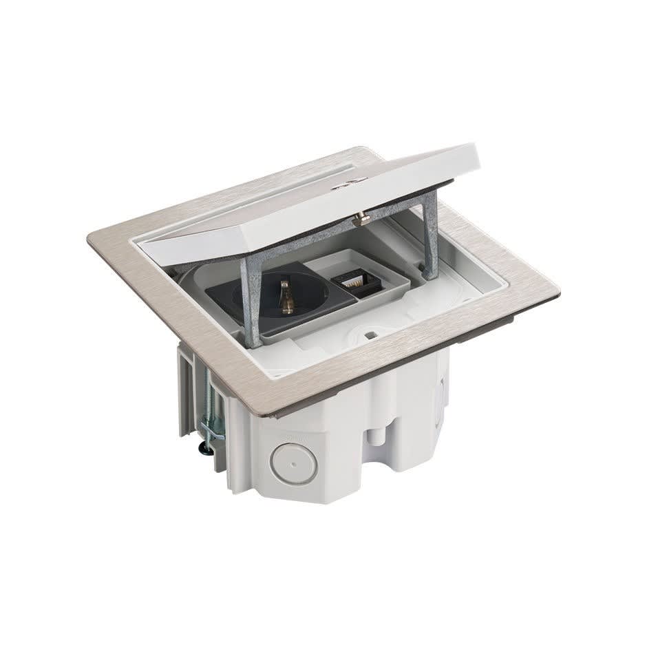 Kit de boîte de sol surélevé étanche IP66 avec 1 prise schuko + 1 connecteur RJ45 catégorie 6 UTP et gaine