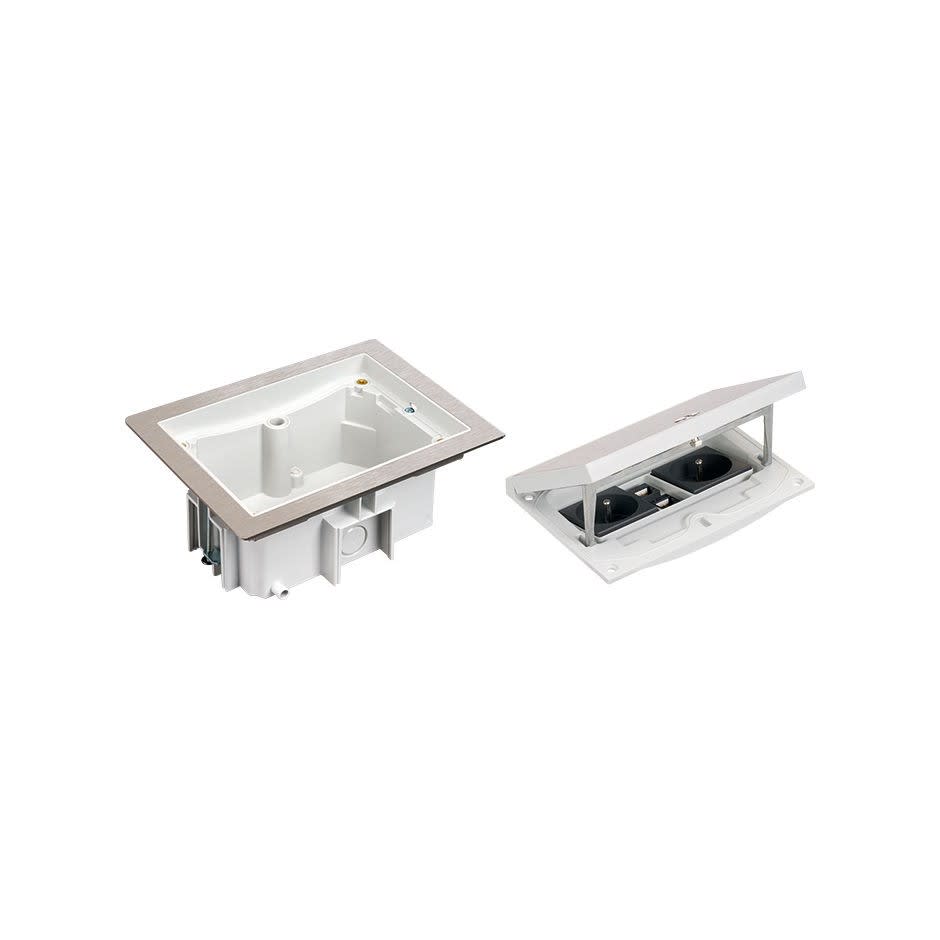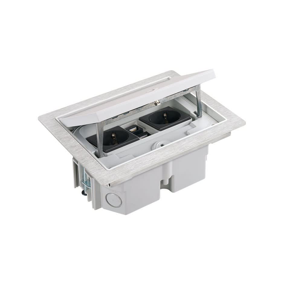 Kit boîtier de sol surélevé étanche IP66 avec 2 prises françaises + 2 connecteurs RJ45 catégorie 6 UTP et gaine
