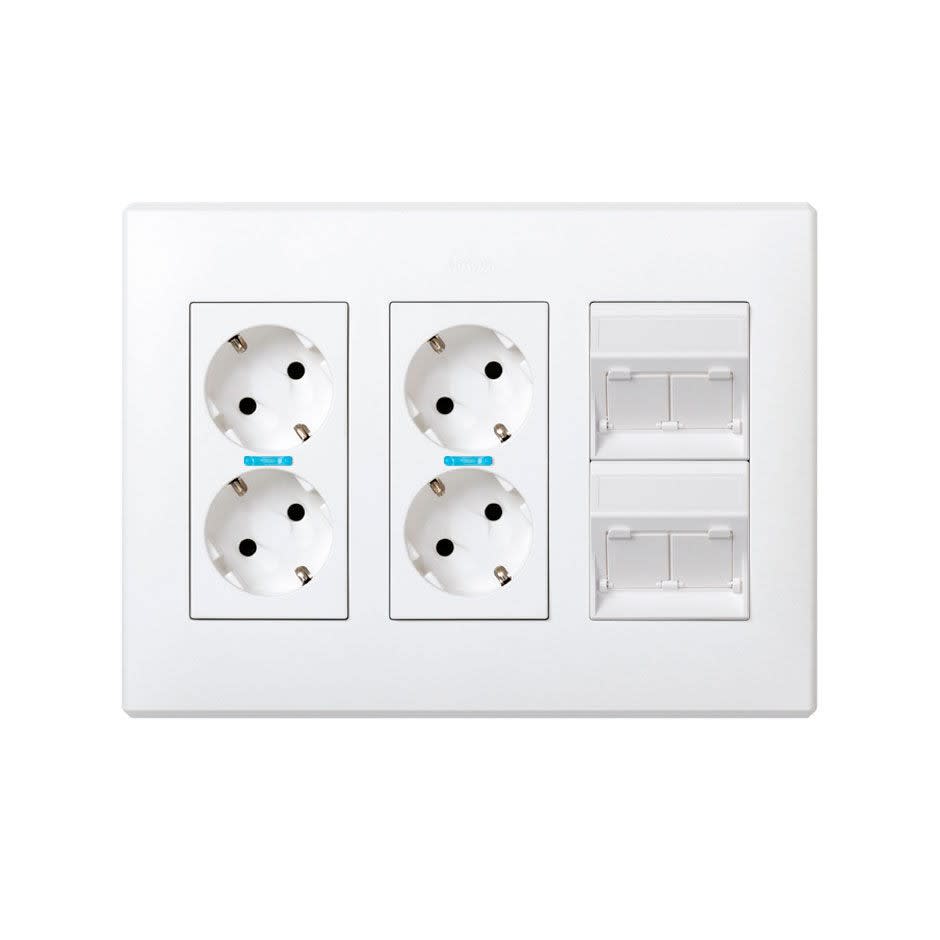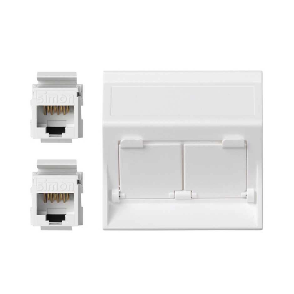 Simon - Plaque CIMA VDM inclinée avec volet 2 x RJ45 Cat. 5e UTP - Blanc neige - 50004086-030