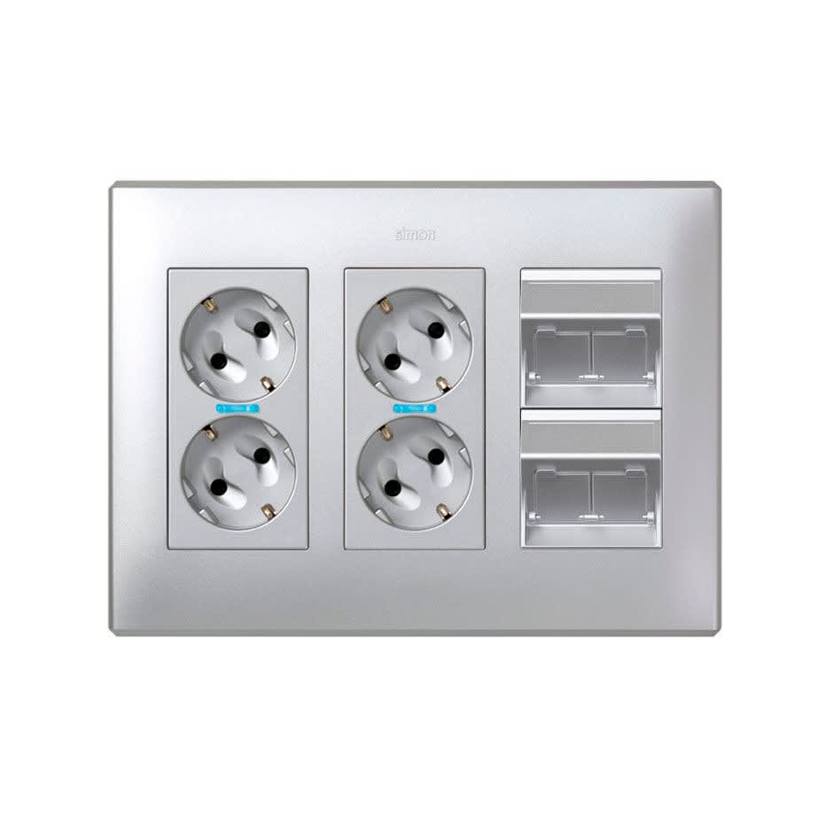 Simon - Plaque CIMA VDM inclinée avec volets 2 x RJ45 - Aluminium - 50000086-033