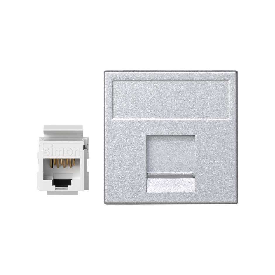 Simon - Plaque K45 VDM plate avec volet 1 x RJ45 Cat. 5e UTP - Aluminium - K95U/8
